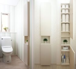 壁に埋め込みスタイルの収納で空間スッキリ!MONOプレイスのトイレ収納とスリッパ収納