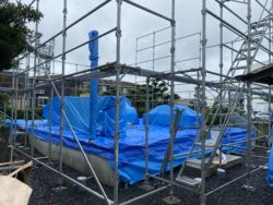 少し時間が空いたので S様邸を見てきました 大工さんがベーパーバリアシートを施工中 なんかカッコいい ……