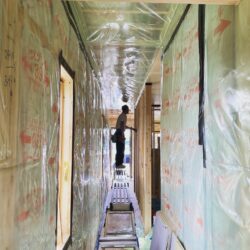 少し時間が空いたので S様邸を見てきました 大工さんがベーパーバリアシートを施工中 なんかカッコいい ……