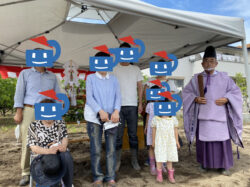 昨日はH様邸の地鎮祭でした 良い天気に恵まれ 無事に執り行えました H様、誠におめでとうございます。 ↓皆様で記念撮影……