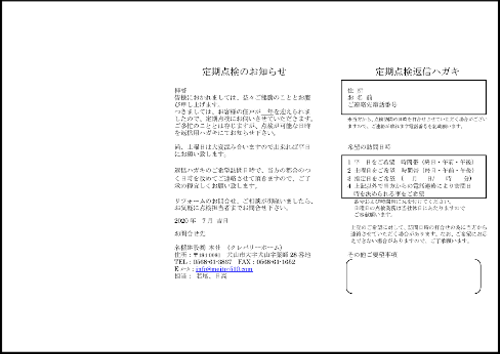 点検該当月の2ヶ月前に定期点検のご案内を往復ハガキにてご案内いたします。