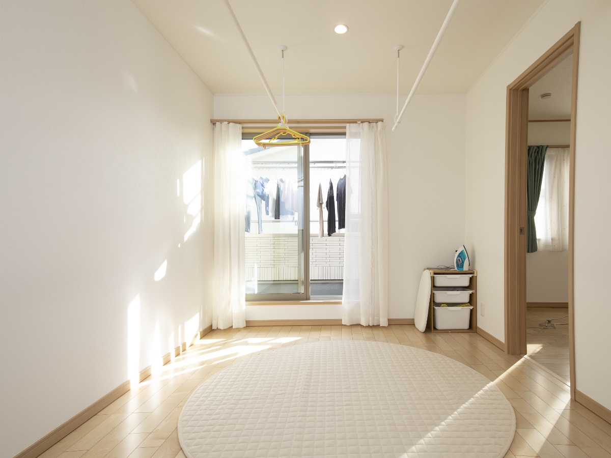 バルコニーとも面しているため、外干しから室内干しに切り替えるのもラクラクです。