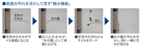 タイルは表面が濡れると薄い水の膜を張る「浸水機能」を持っているため、