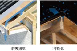 軒天通気と棟換気をもうけることで小屋裏に空気の