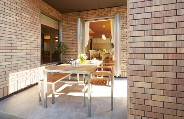 外壁タイルは、耐水性が高く雨や風から家を守ってくれるほか、壁の中まで水が染み込まないので、経年劣化しにくい素材です。
