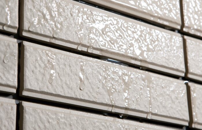 タイルには親水機能が備わっており、雨が降ると汚れが流れ落ちやすい特長があります。そのため、長期間外壁をきれいな状態で保つことが可能!