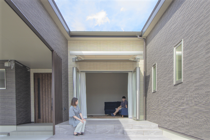 例えば、リビングに面した中庭を作り、観音開きの大きな窓を設置した開放的なお客様邸の場合。