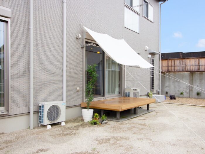 また、ウッドデッキの上に日除けシェードを付けるのも一つの手。