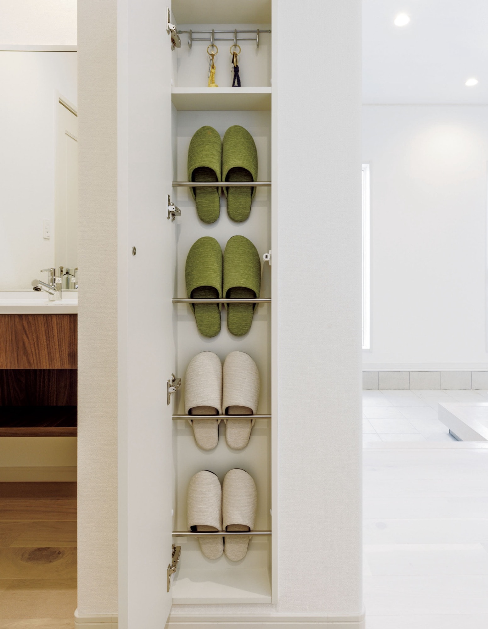 ▶︎壁に埋め込み式の収納ならスリッパ収納にも注目