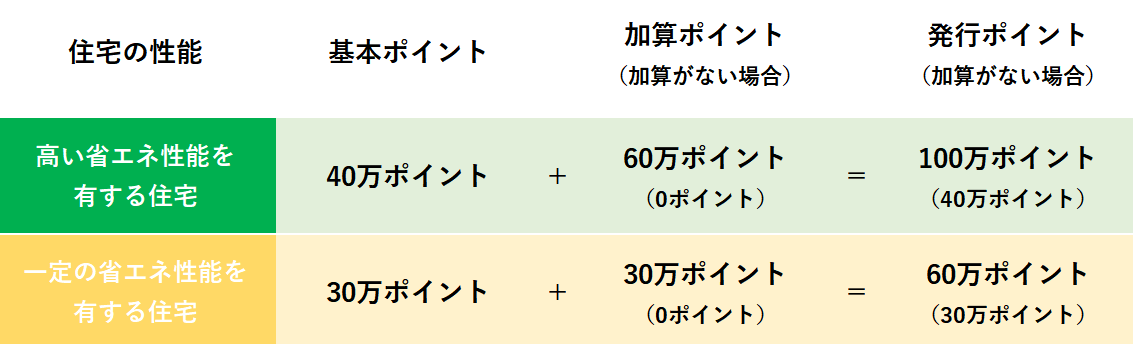 グリーン住宅ポイントは省エネ性能の高さで発行されるポイント数が異なります。
