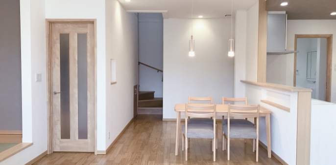 1階は、キッチンからリビング、畳コーナーが見渡せる小さなお子様がみえるご家庭でも安心できるプランニングになっております。