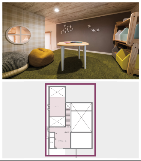 デッドスペースを、収納スペースとして使うロフトやホビールーム、ゲストルームなど、ライフスタイルに合わせて多目的に活用できます。
