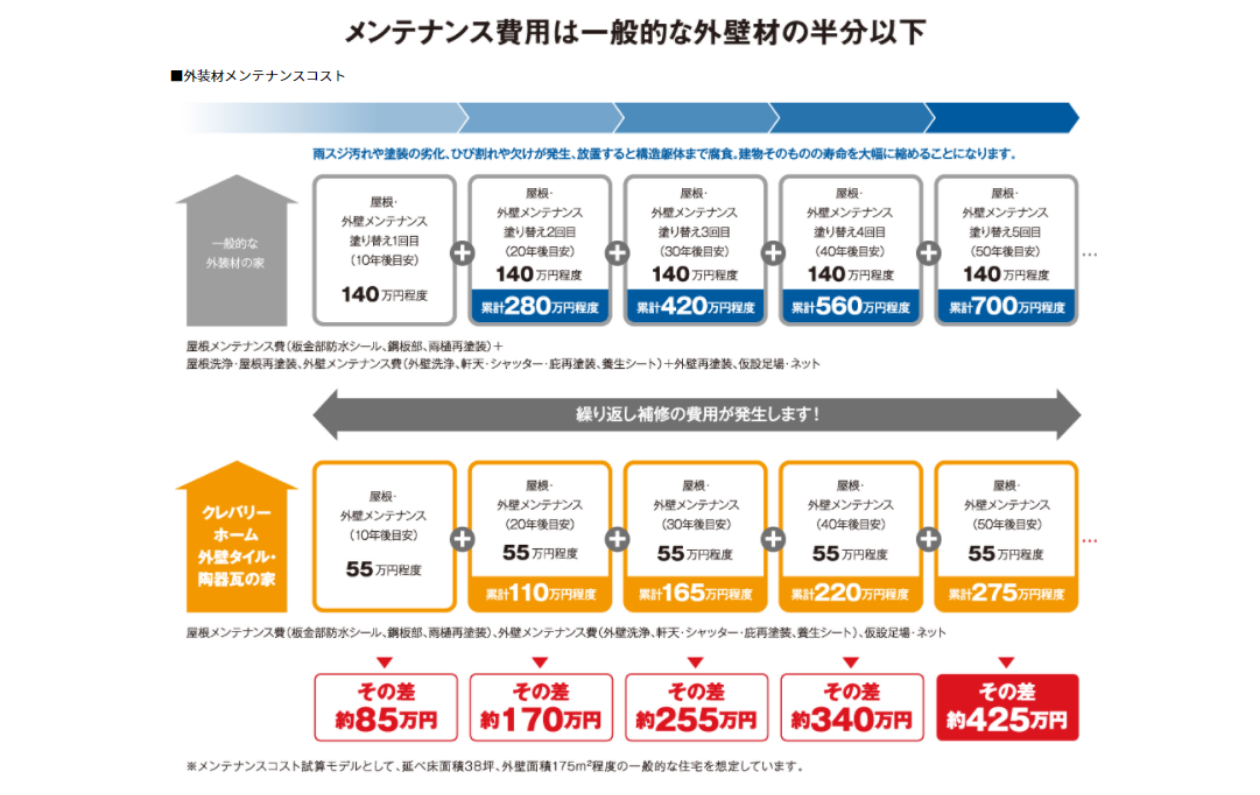 建物に通気構造を設けるのに加え、湿気の多い場所に使われる部材も湿気に強いものを適切に選ぶなど、クレバリーホームでは住みはじめたときの高い性能が損なわれることのないように十分な湿気対策を施しています。